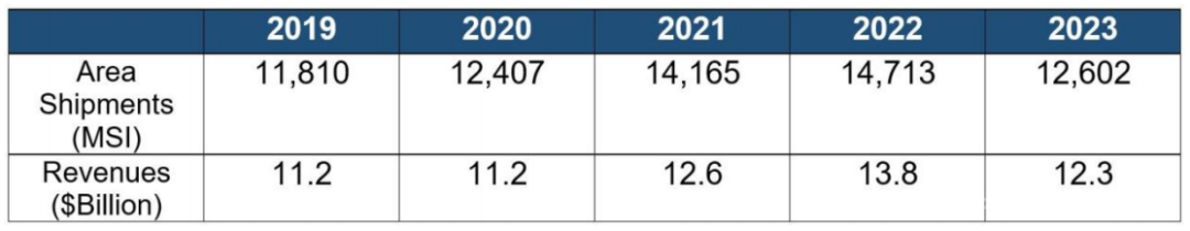 2月7日,SEMI 发布报告,2023年全球硅晶圆出货量下降14.3%,至12602百万平方英寸,同期硅晶圆销售额下降10.9%,至123亿美元。这一下降的原因是终端需求放缓和库存调整Memory和logic需求的疲软导致12吋晶圆的订单减少,而foundry和 analog使用减弱导致8吋晶圆的出货量下降。