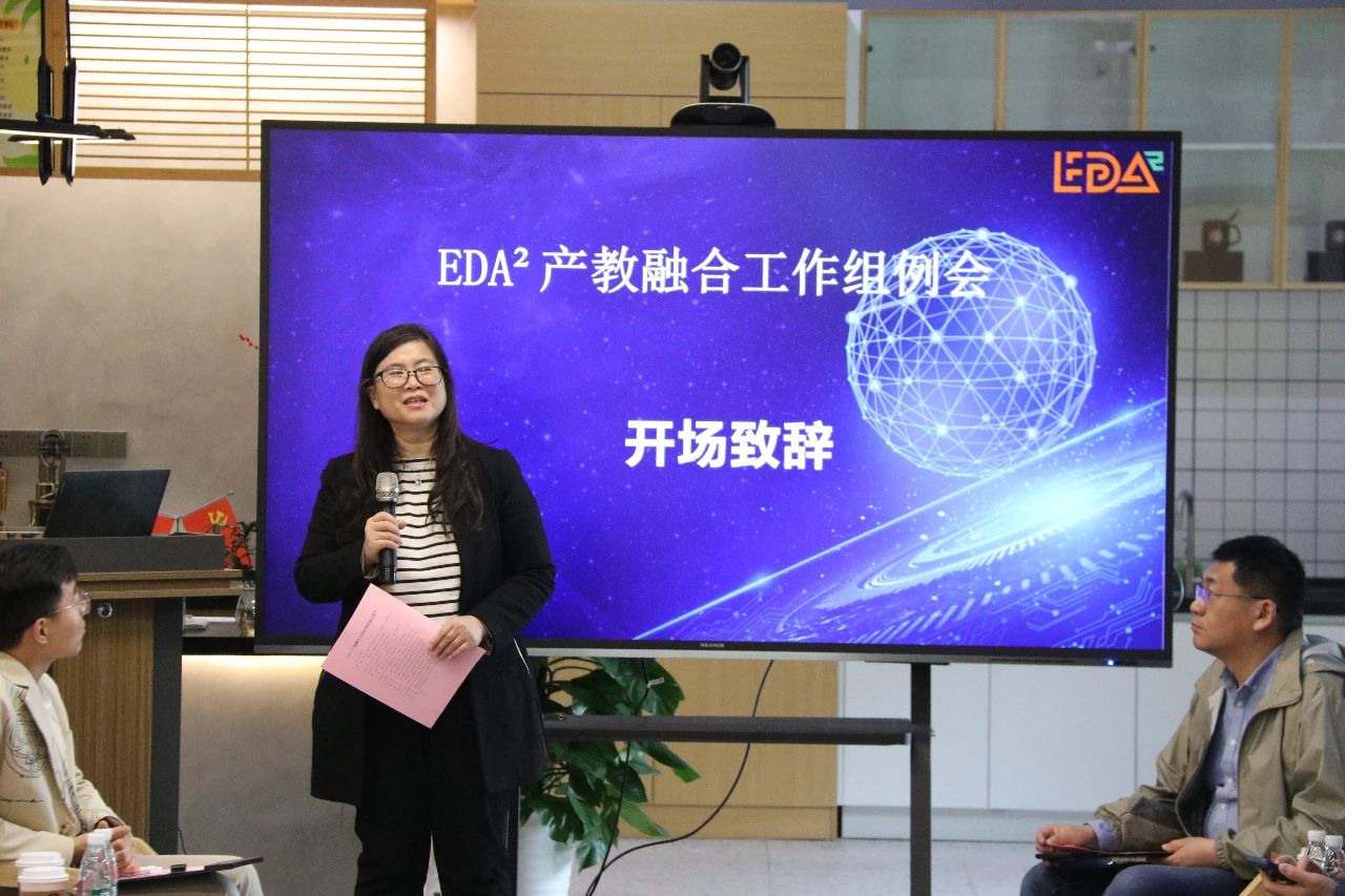 EDA²秘书长曾璇教授、产教融合工作组组长时龙兴教授、华为生态发展经理郑云升做开场致词。欢迎会员单位代表、专家、学者来到六朝古都、十朝都会参加会议,产、学、研、用各界深度合、高效协同,产教融合工作从课程建设到实训平台等取得了很大进展。