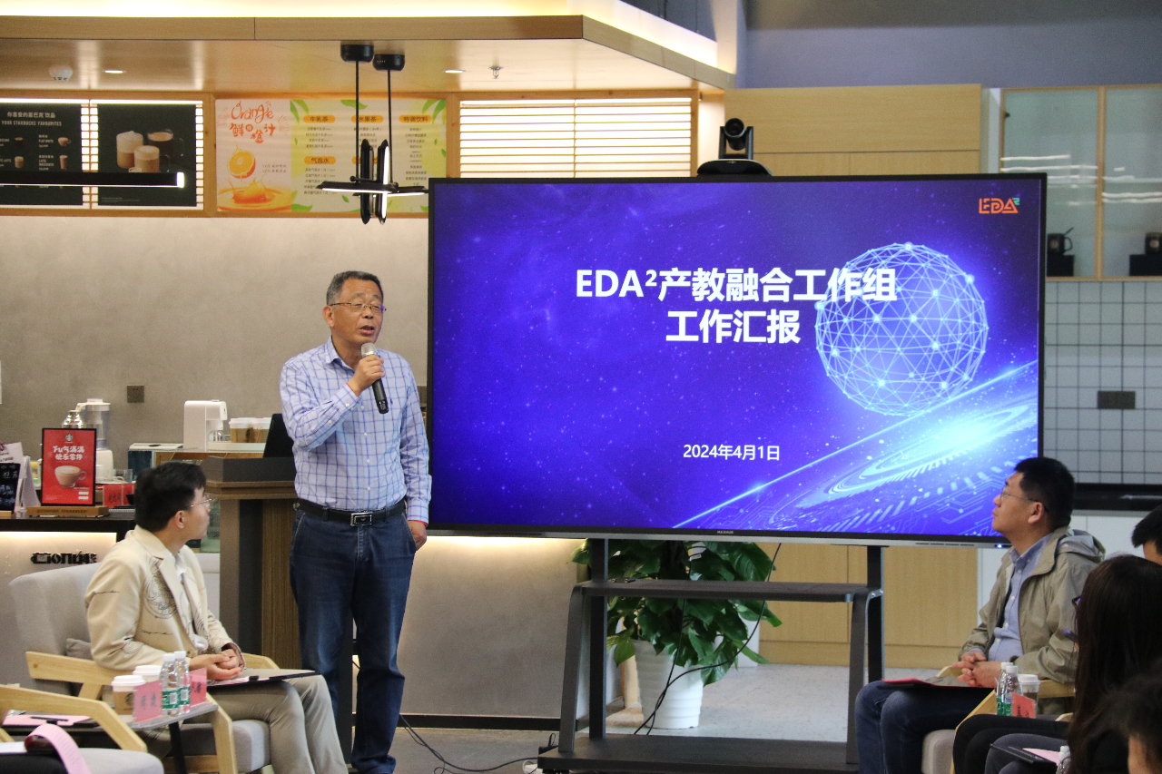 EDA²技术委员会副主任王润声教授汇报EDA课程体系及教培平台进展,EDA课程体系的目标是持续搭建高校间、校企间、教师间的交流平台,当前已初步形成课程资源货架。与会专家学者就如何更好进行课程建设、暑期师资培训、教师激励等提出了很好的建议。